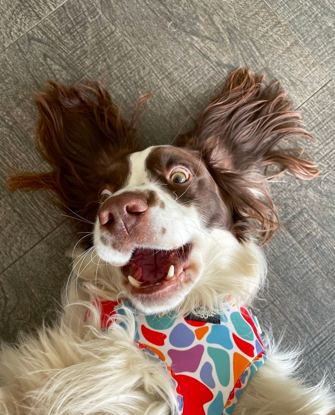 - Our harnesses at Full Body Waggle come with fully adjustable straps at the neck and chest. This ensures a comfortable fit for your pup and makes it easier to take off.